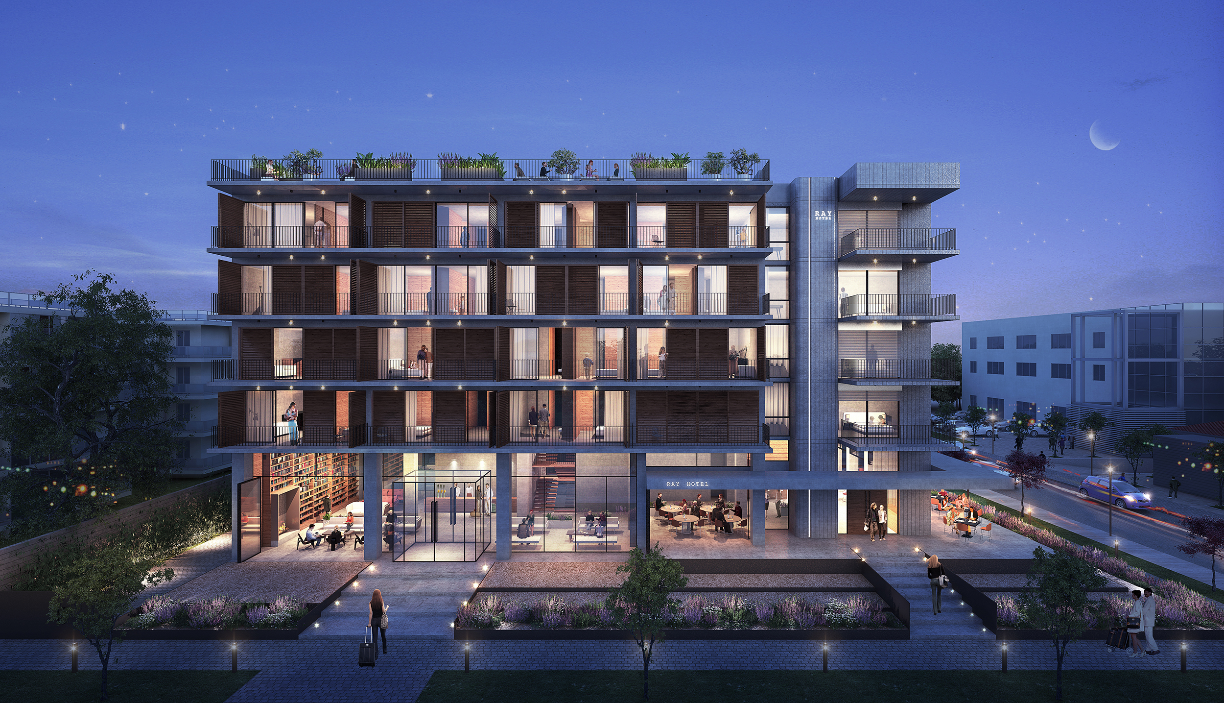 RAY HOTEL is an elegant highlight within the urban fabric. It embraces the surroundings by opening up its inside to the city. It’s simple, it’s logical, it’s fresh! The client seeked to transform the 2-star hotel to a 5-star hotel with a restaurant and a roodtop garden – a new landmark for the region.