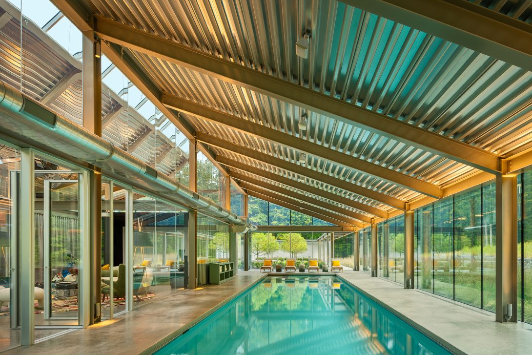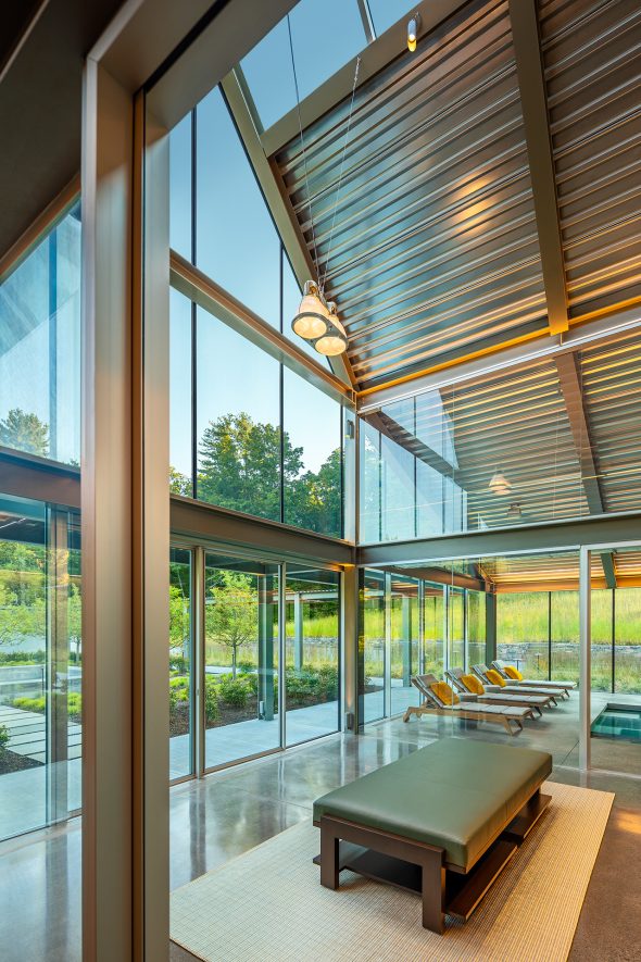 Size/Program: 7,400 sf / A Recreation Pavilion with pool, gym, sauna, massage, golf simulator and entertainment spaces